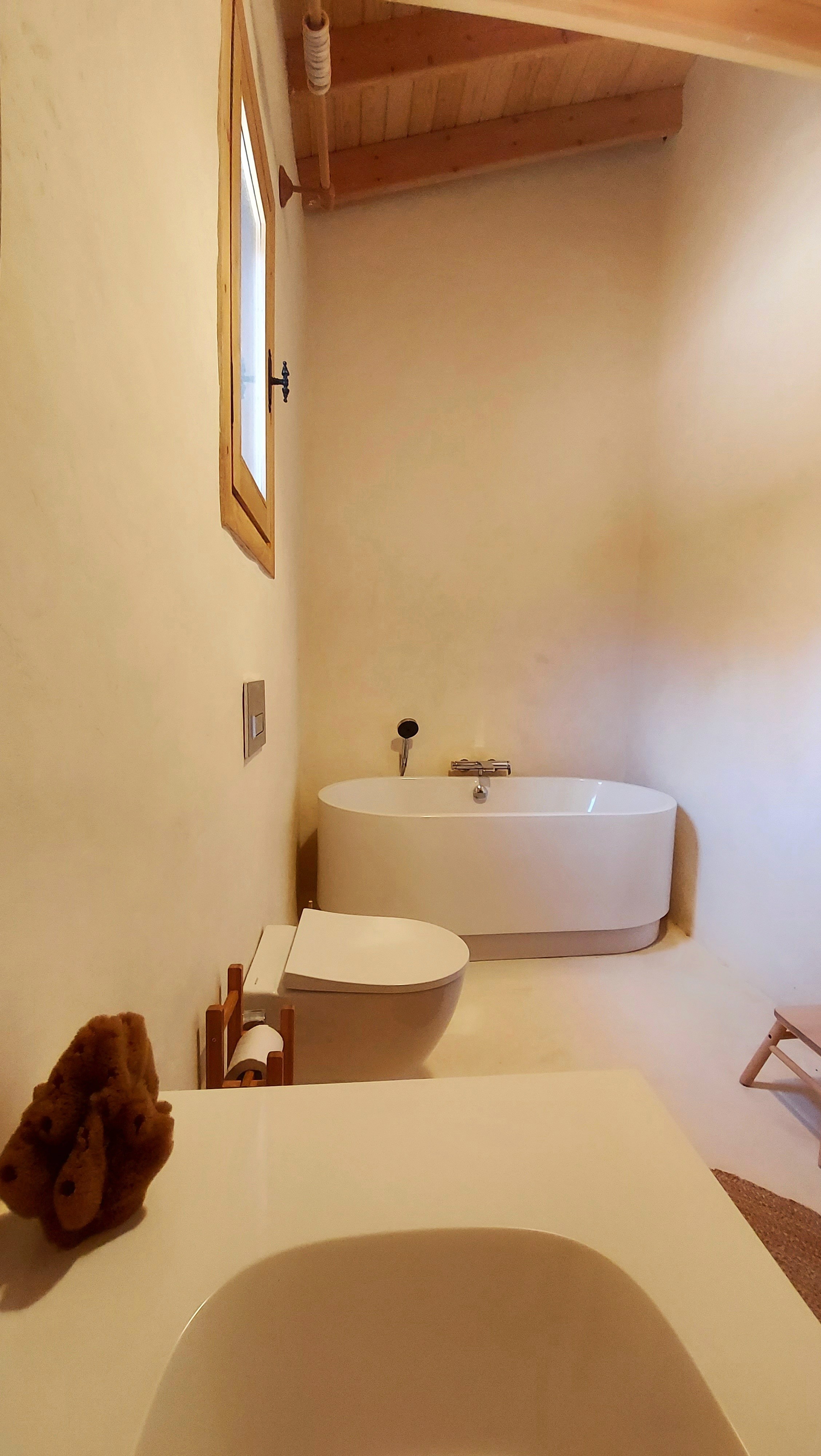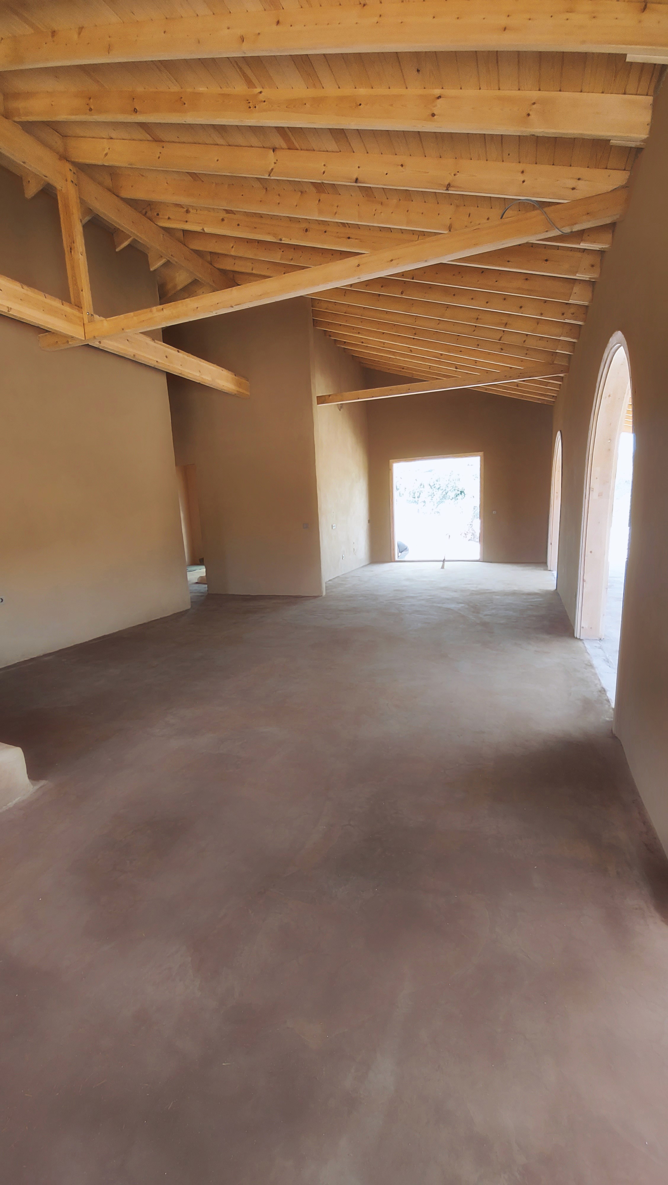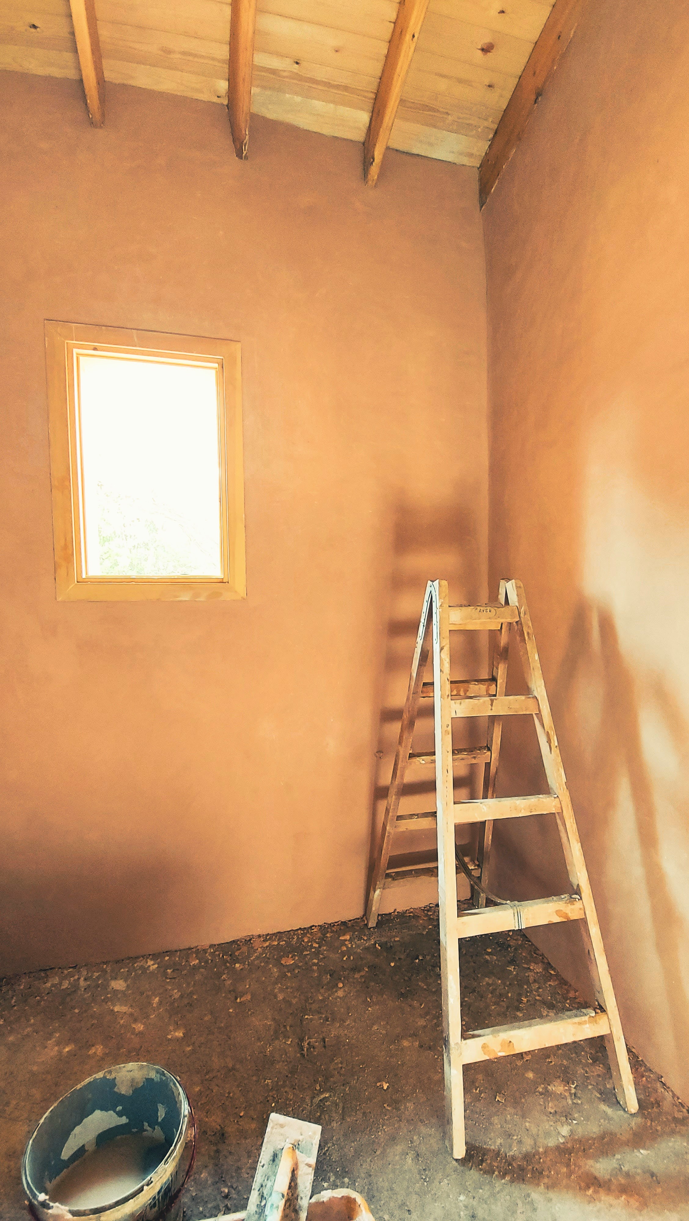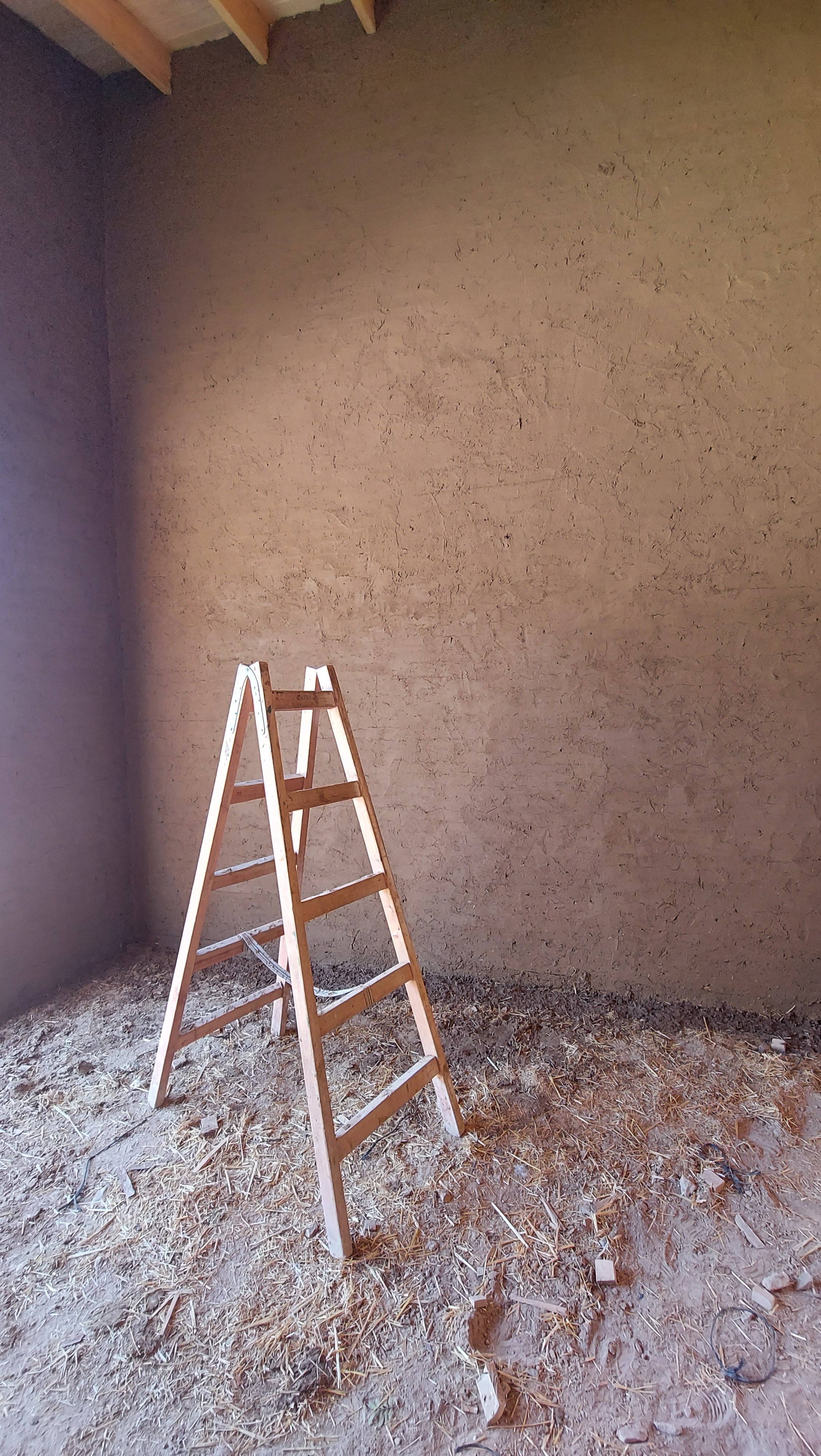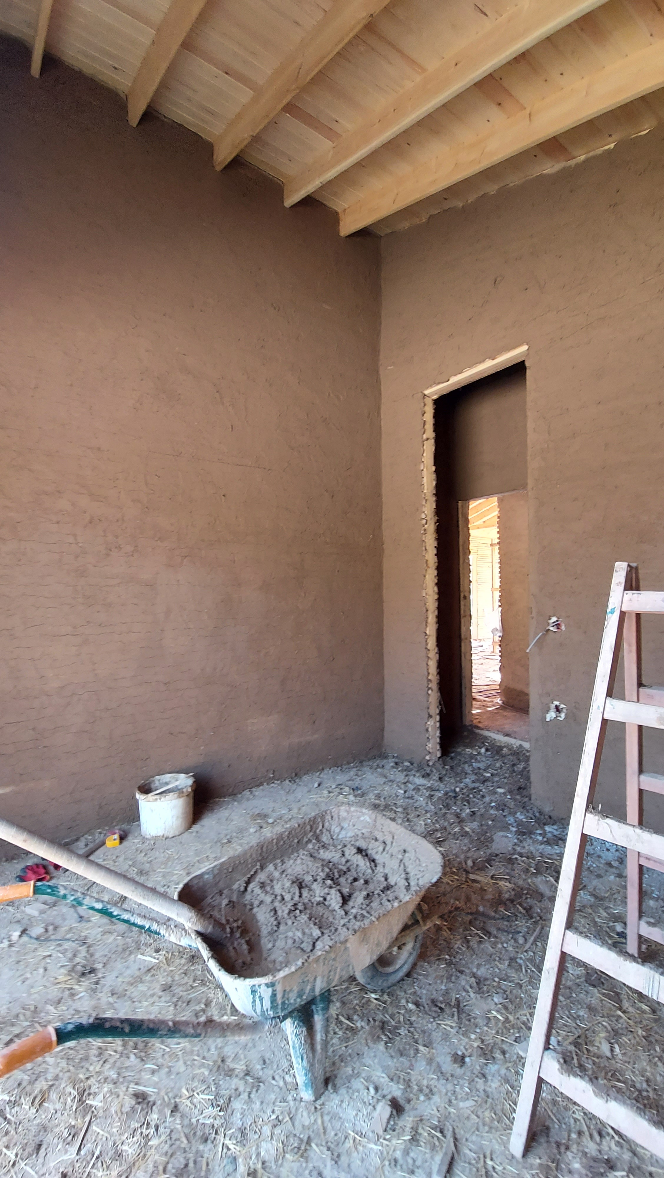 Locally available resources shaped the building process. The site’s own soil was used for earthen plasters and flooring, while stone, scoria/pumice, lime, and straw were sourced nearby. These choices ensured low embodied energy and eliminated the need for construction chemicals. The result is a breathable, durable structure with minimal ecological footprint.
