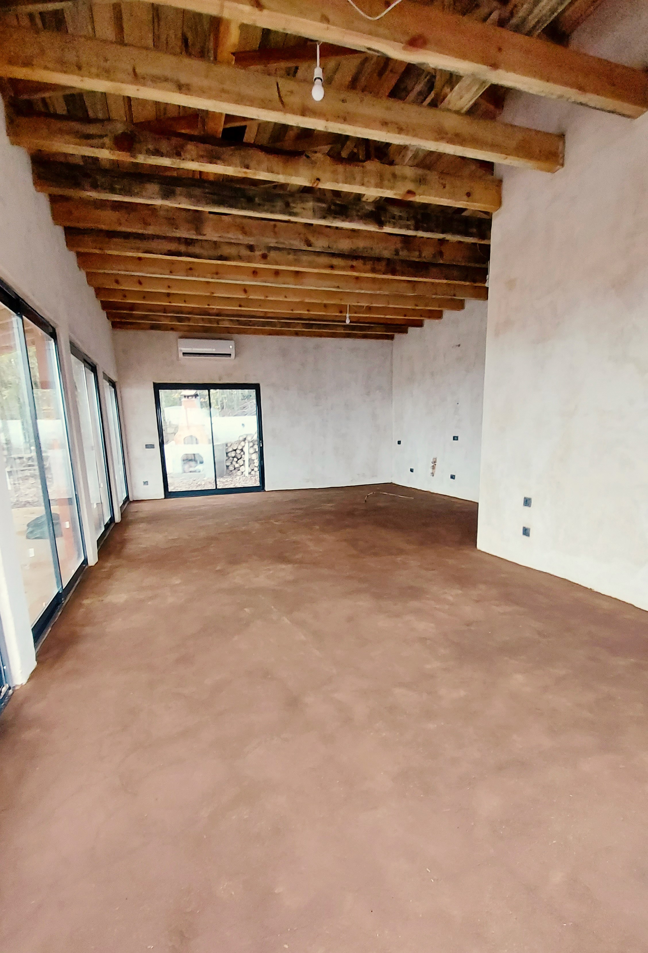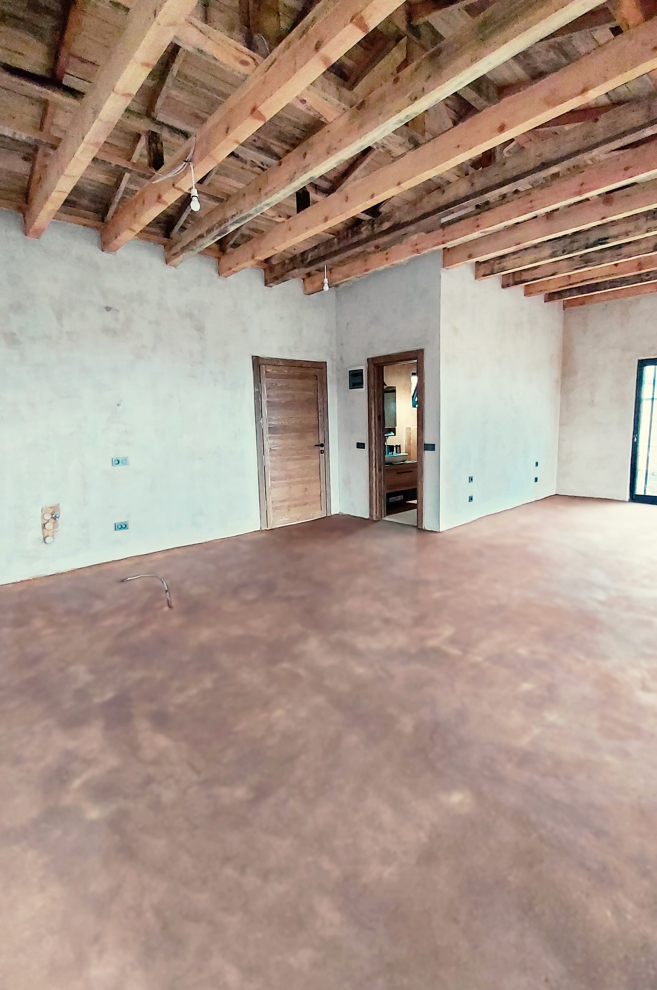 The bathroom walls and floor were covered with tadelakt, a traditional lime-based plaster that provides a water-resistant surface with a smooth, natural quality. For the exterior, lime plaster was chosen to protect against moisture while allowing the walls to remain vapor-permeable.