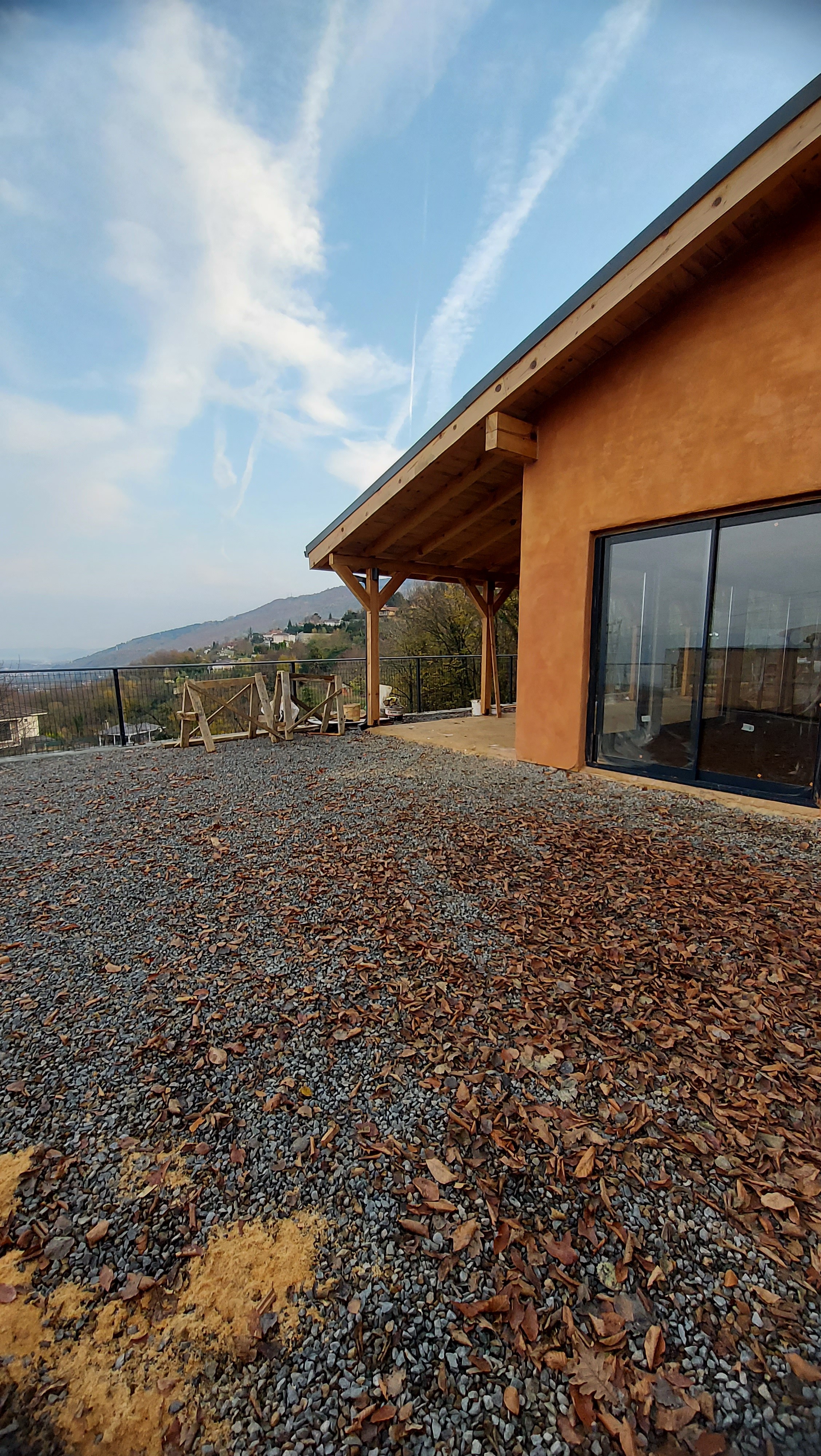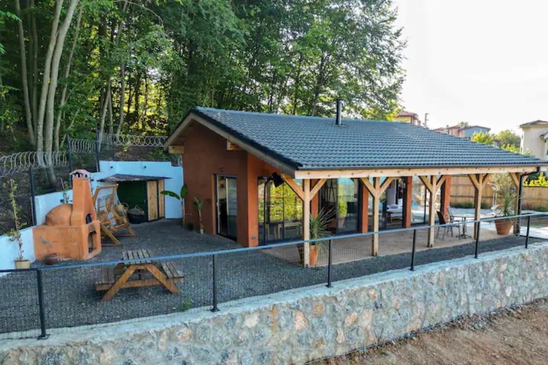 The 55 m² studio was designed as a guest house. It adopts low-impact construction methods that emphasize ecological performance and material honesty. The structure was built with a timber frame and insulated with compacted straw infill to ensure natural thermal performance.