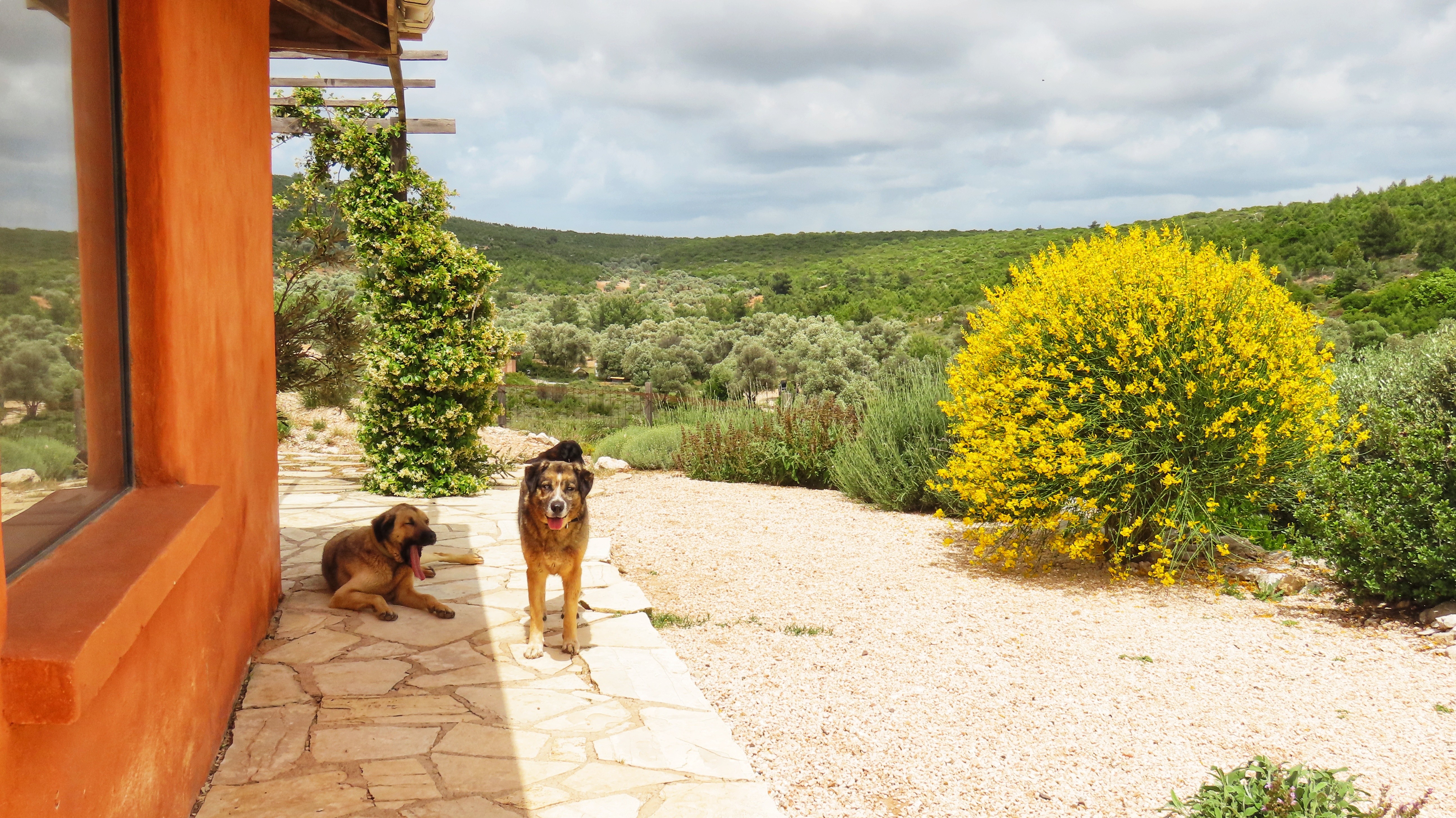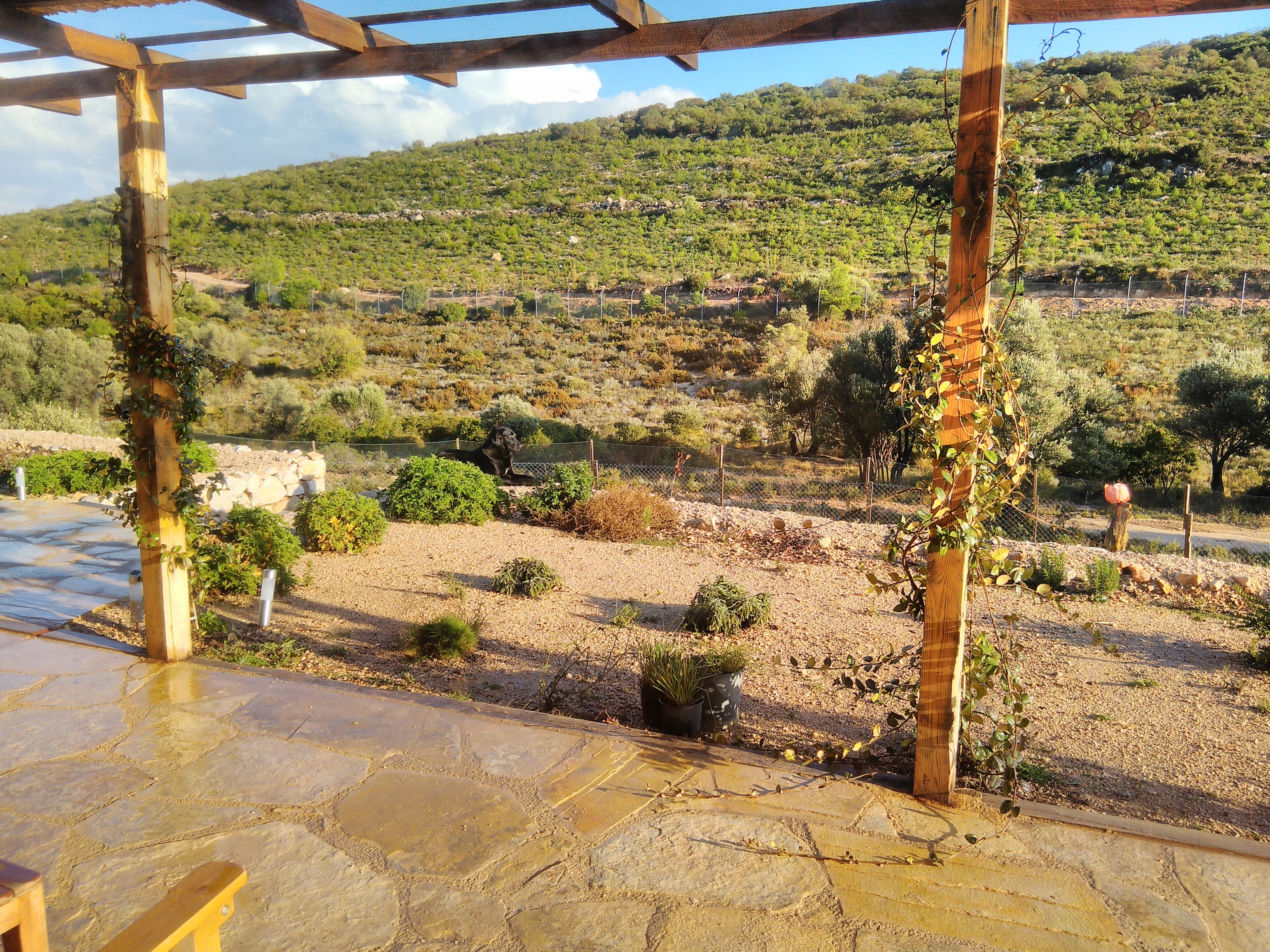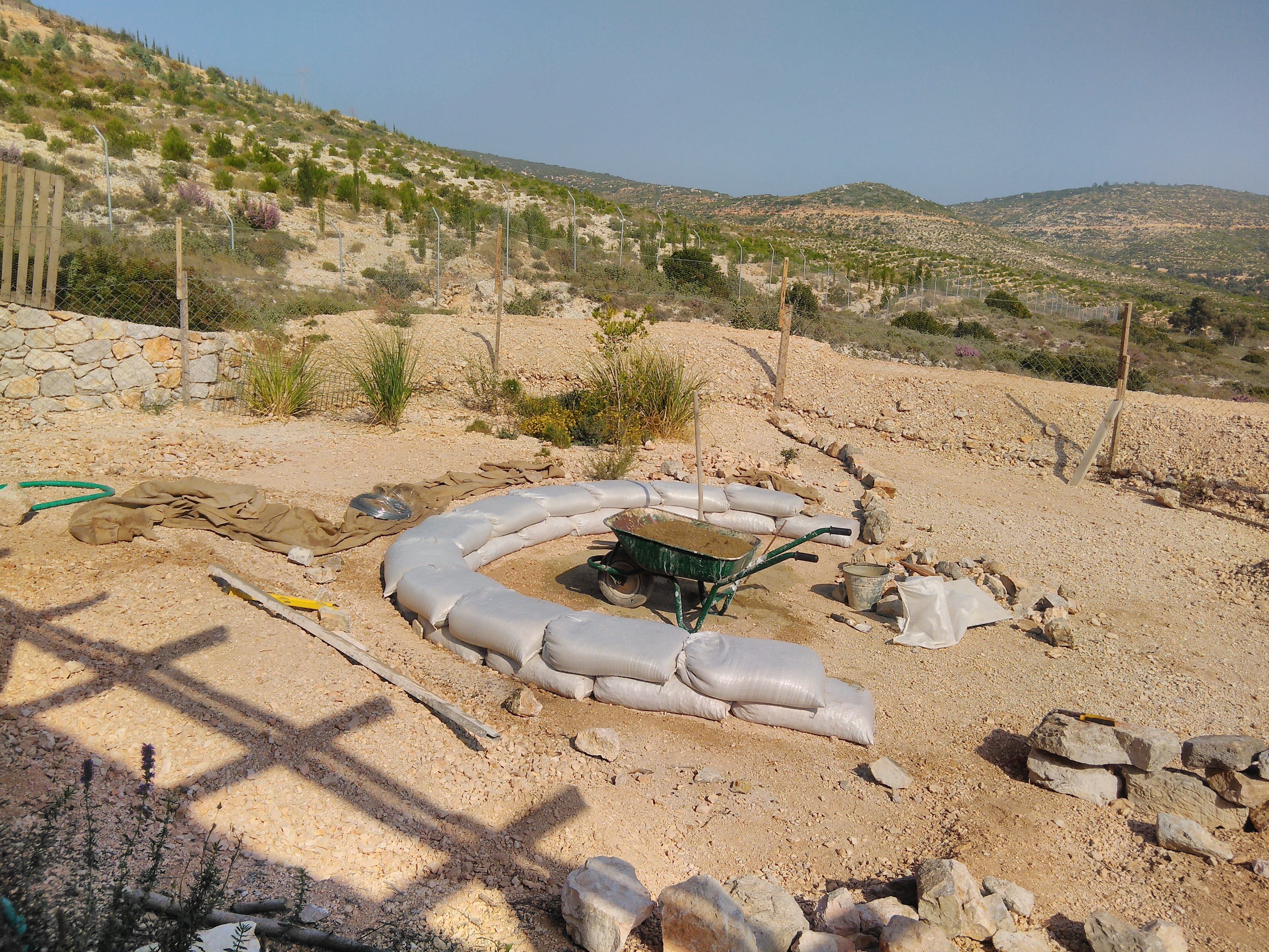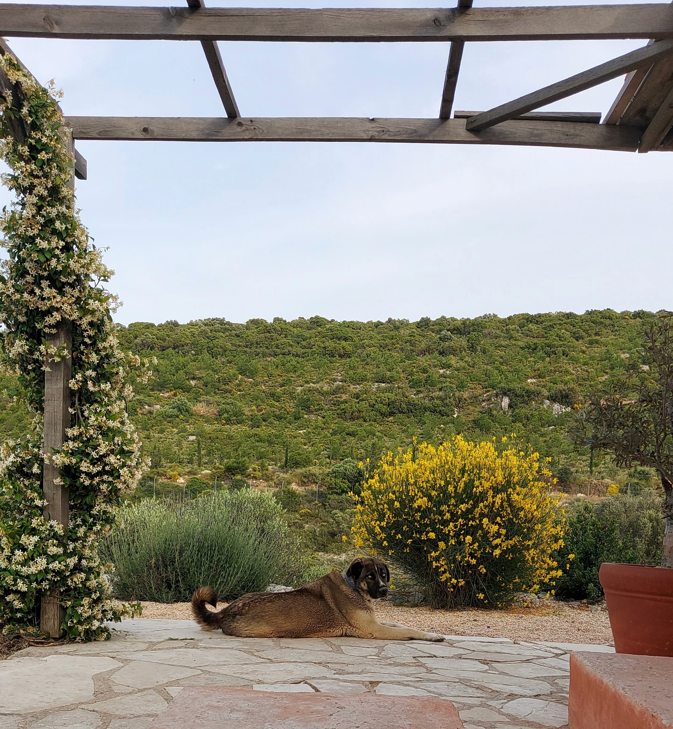 Planting was developed in continuity with the site’s ecology, using only local and climate-adapted species to maintain a balance between the forest edge and cultivated areas. Across the wider land, native trees such as mastic, olive, and carob were planted in keeping with the site’s existing vegetation. These species thrive without irrigation or maintenance, regenerate after fire, and provide long-term ecological and economic value while offering shelter and food for wildlife. Additional fruit trees and shrubs were introduced to complement this system and support small-scale food production.