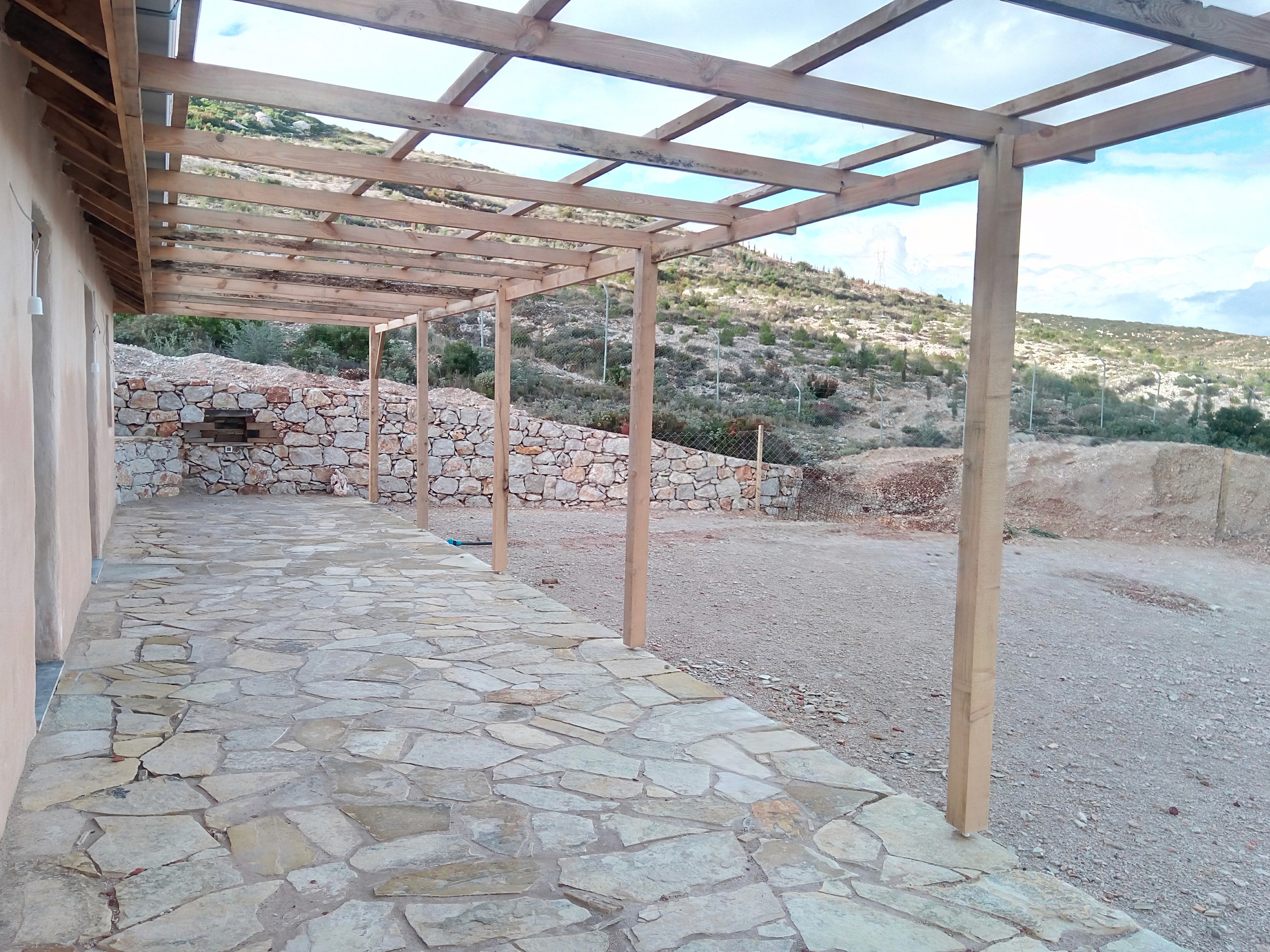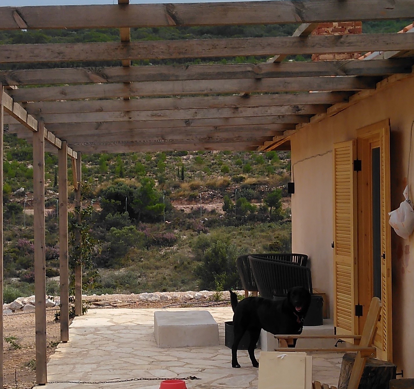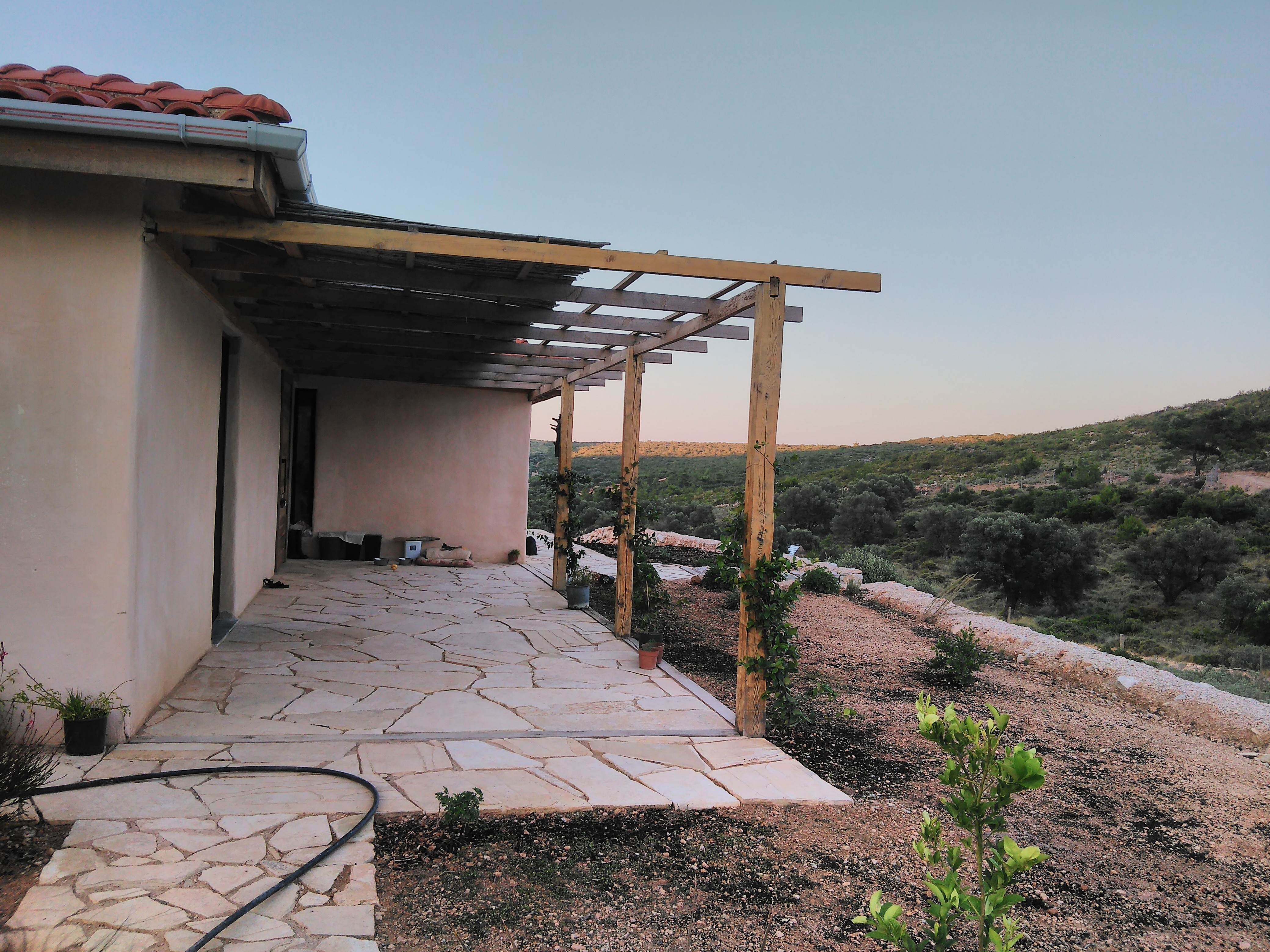 Gravel paths and low stone terraces were introduced around the domestic areas, maintaining the integrity of the rocky Mediterranean terrain. Rainwater harvesting was also integrated into the design, with french drains directing runoff into an underground tank, responding directly to the land’s topography.