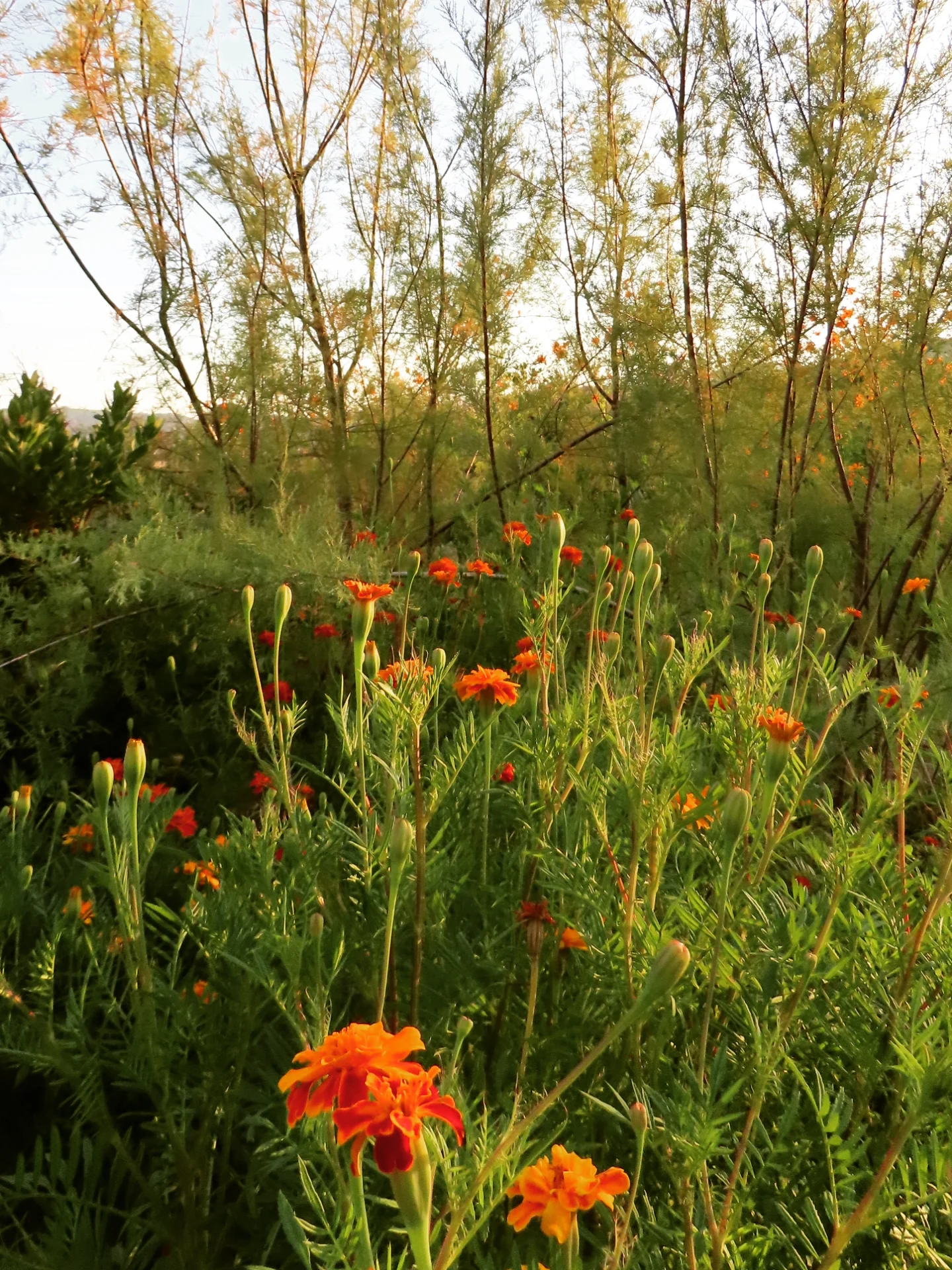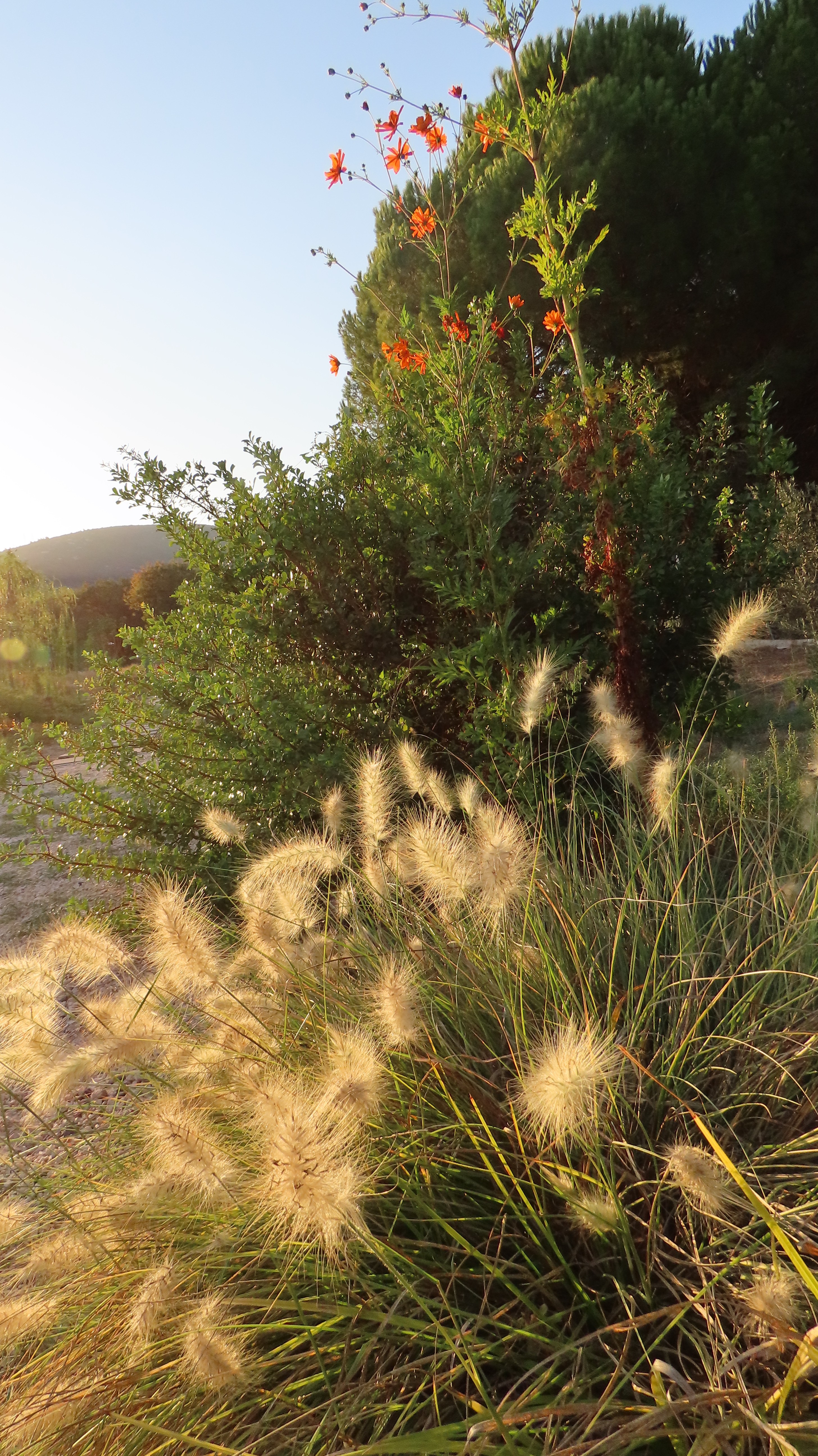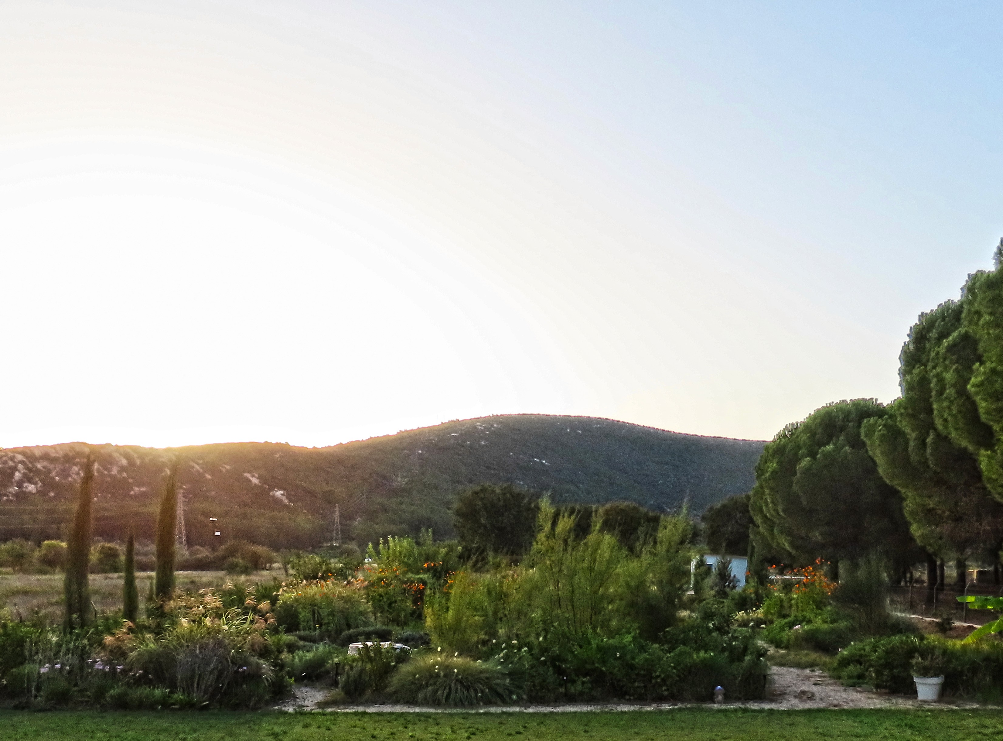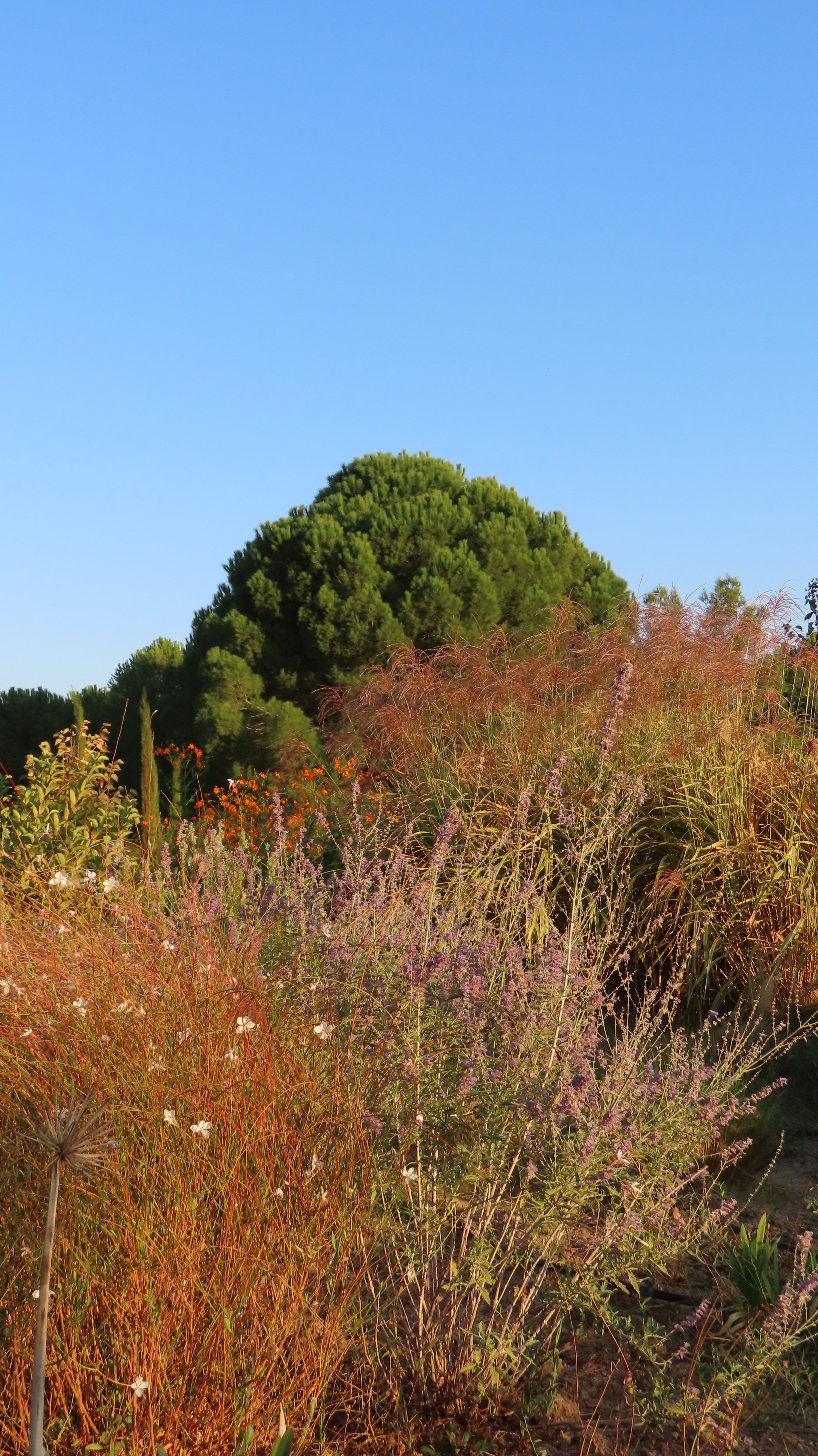 The land carried strong contrasts: in winter, rainfall from the surrounding hills flooded the site, turning soils into swampy ground; in summer, the same soil hardened and cracked under drought, making cultivation difficult. To address this, slight grading adjustments were made, and a network of French drains was installed to channel excess water into an underground tank, where it could be harvested for irrigation during dry months. While regular watering was required in the garden’s first season to establish the young plantings, over time the need gradually diminished as plants settled.