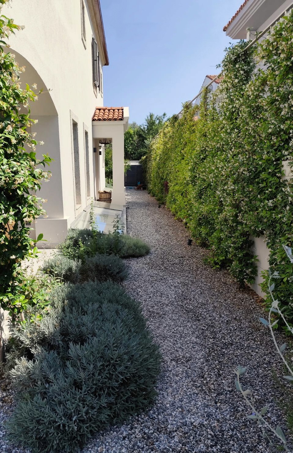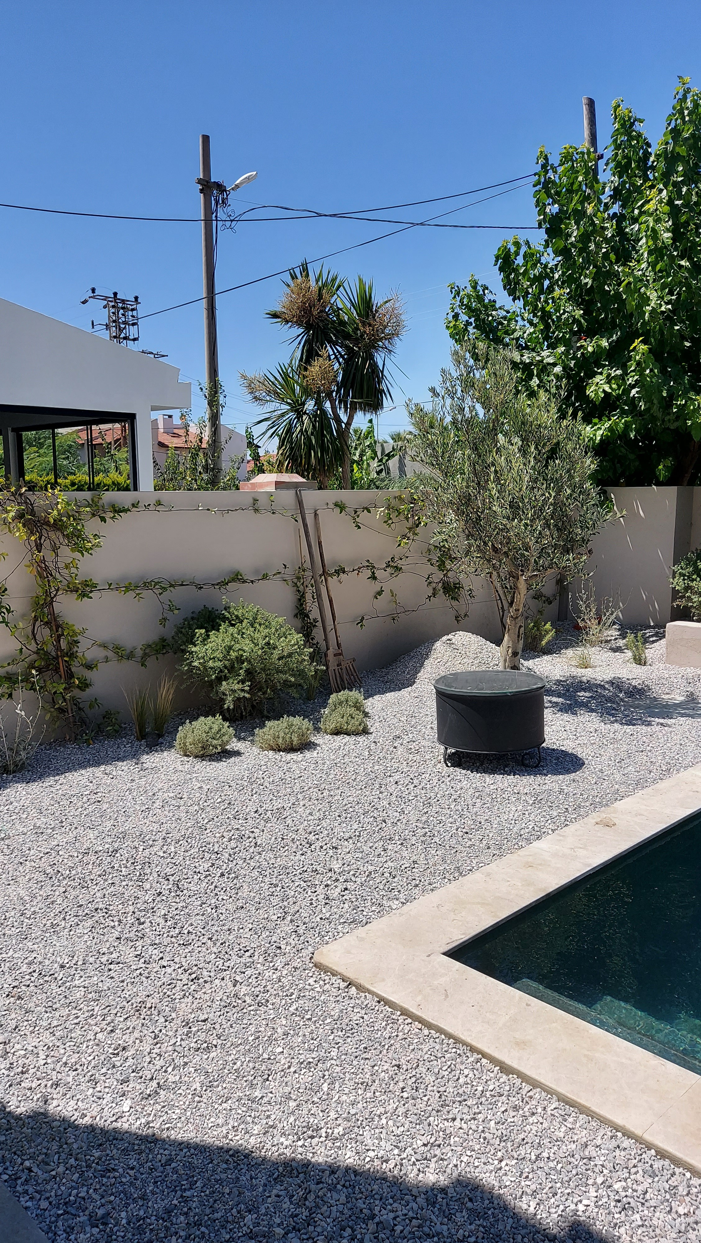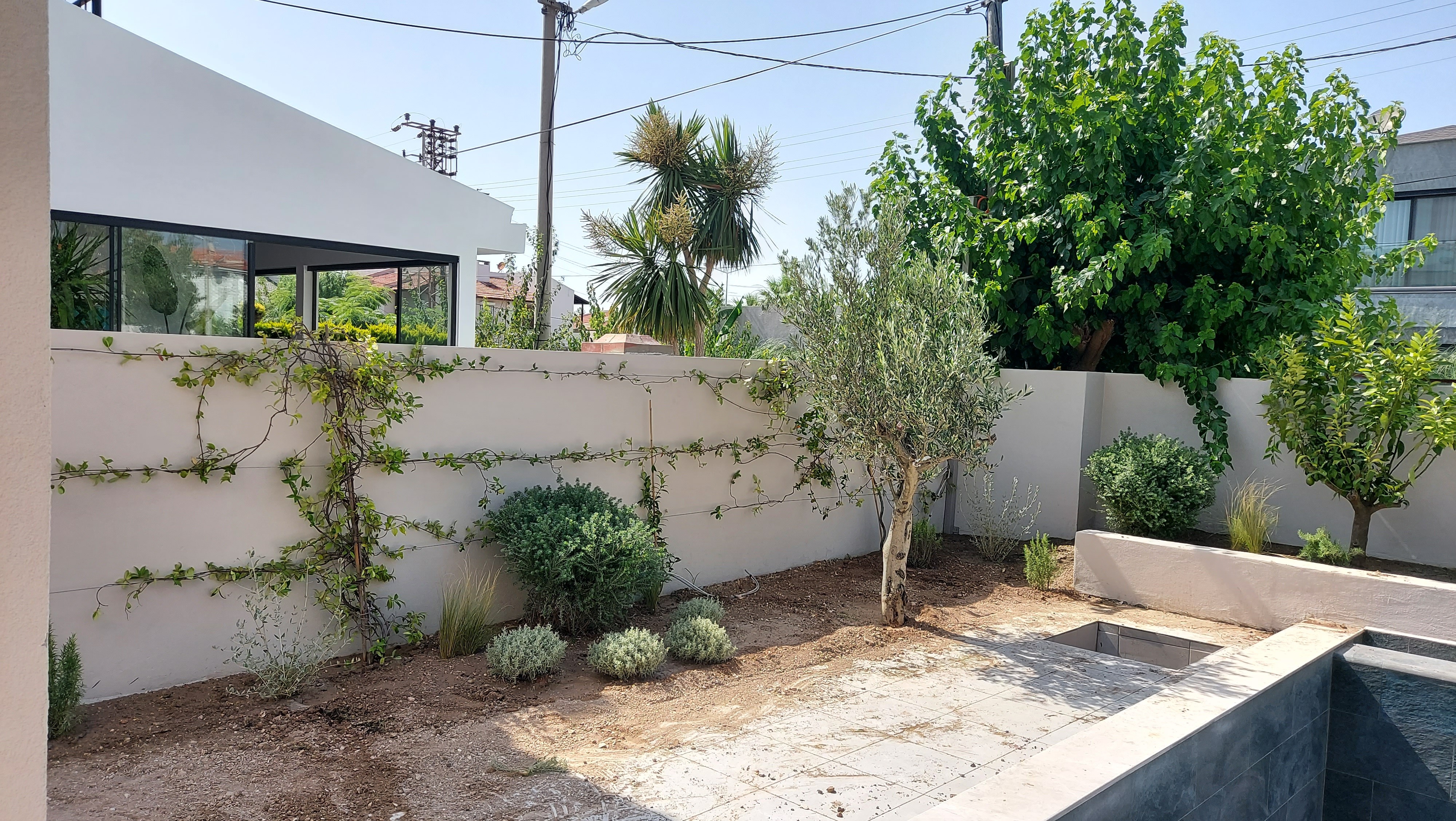 Set in the dry Mediterranean climate of Alaçatı, this 500 m² plot was transformed into a resilient house garden. Planting focused on native and local species that are naturally drought-tolerant and pest-resistant, reducing maintenance needs while strengthening the ecological character of the space. The garden captures the essence of a Mediterranean landscape—resilient, seasonal, and fragrant.