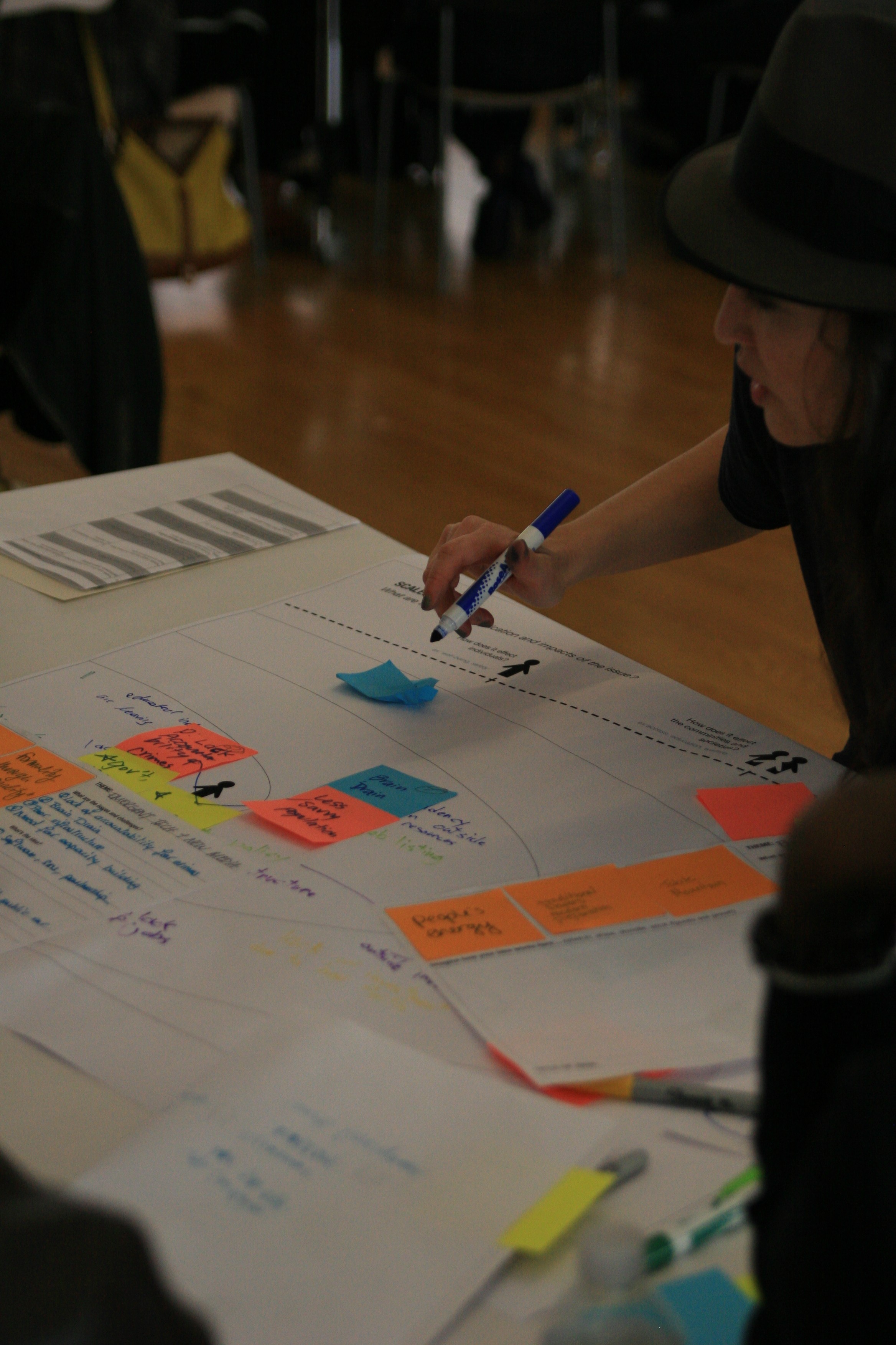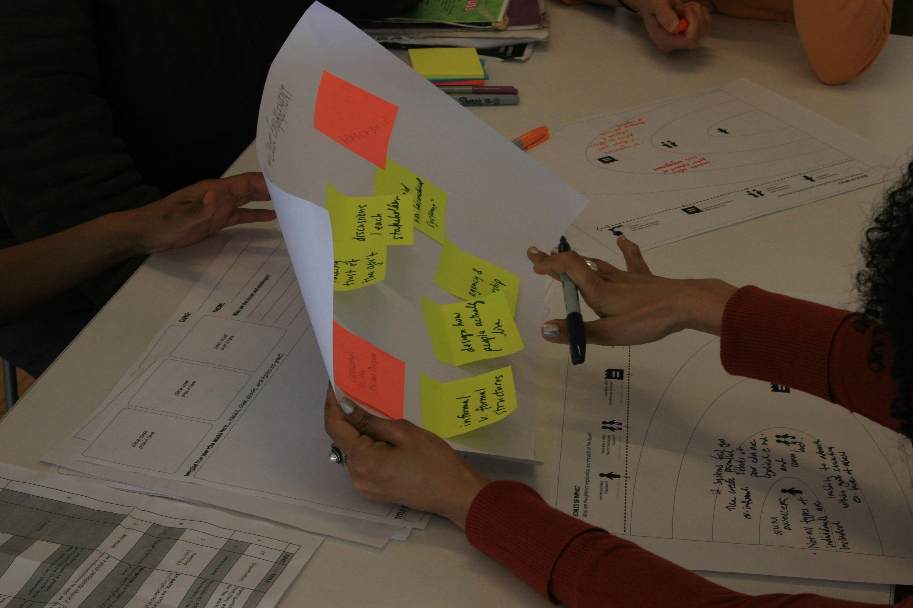 We designed two frameworks to communicate the interdependencies of consumption and production systems across social and ecological scales in a simple, visually accessible format. The workshop was structured as a Randomized Control Workshop (an adaptation of the Randomized Control Trial method), with groups randomly assigned one of two frameworks to assess the impacts of a selected issue—one framework included natural systems, the other did not. To evaluate the prototype’s impact, we mapped the flow of knowledge during the ideation sessions following the workshop.